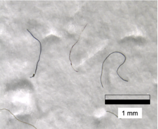 Figure 4: A microfiber found within an amphipod from 10,890 m deep in the Mariana Trench. (Jamieson et al., 2019) https://doi.org/10.1098/rsos.180667