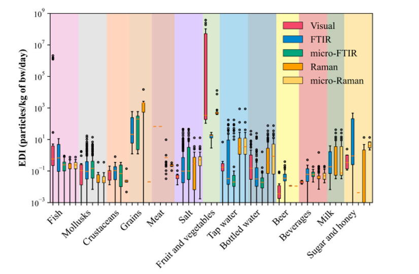 For years, seafood has been thought of as the primary source of microplastics in our diet. And while shellfish and crustaceans certainly do contain high concentrations, this new analysis found that the foods contributing the most microplastics to our daily intake are fruits, vegetables, and grains, the very foods most of us eat several times every day. These categories showed the highest estimated daily intake values, with fruit and vegetables standing out as the largest contributor, even surpassing seafood, bottled water, and other drink categories by entire orders of magnitude. In fact, the study estimated that fruit, vegetables, and grains together account for roughly 99.5% of all microplastic particles consumed daily, largely because they are eaten so frequently.